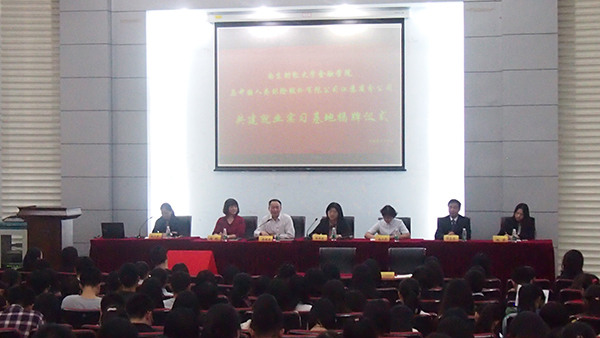 10月19日下午,金融学院与中国人寿保险股份有限公司江苏省分公司共建就业实习基地签约揭牌仪式暨招聘宣讲会在仙林校区经济学科楼报告厅举行。副校长邱伟芬、中国人寿江苏省分公司总经理俞德本出席仪式。仪式由金融学院党委副书记张小荣主持,我校300多名应聘者参加活动。