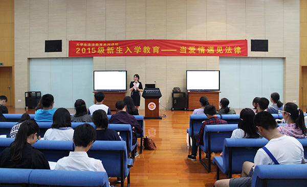 10月22日晚,由我校学生处主办、法学院承办的“《婚姻法》解读与大学生正确婚恋观”讲座在仙林校区图书馆世界之窗举行。法学院王寨华副教授、校心理健康教育与咨询中心崔伟老师分别从法律和心理两个角度,为同学们讲授了如何树立正确、理性的爱情观。我校部分2015级新生听取了讲座。