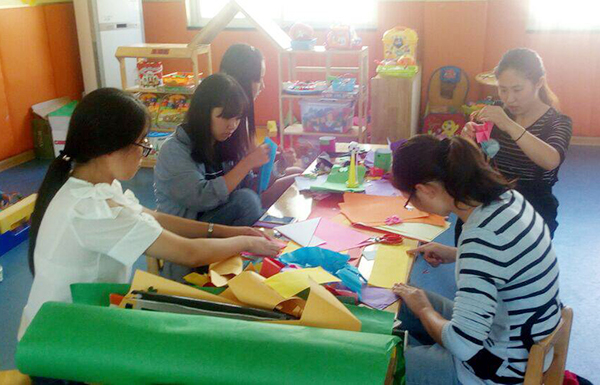 应用数学学院学生和小朋友一起做手工