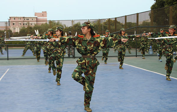 今年,我校打破了往年按学院、专业、班级组建方阵的传统模式,根据项目选择进行组队,并在传统的站军姿、踢正步、队列表演等“老三样”项目外,增加剑术、刀术及棍术这些学生喜闻乐见的新项目。同学们纷纷表示这样的形式很新鲜,不仅增加了训练的趣味性,同时还增强了训练的效果。