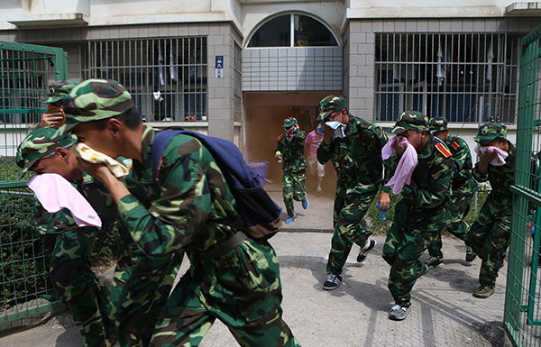 我校开展新生消防逃生演练 校摄协 徐珊/摄