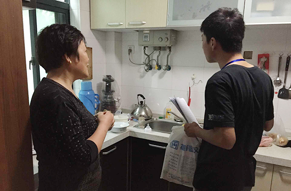 据调查发现,八成多家庭灶具油腻、六成多家庭不常换抹布,很多家庭的抹布、砧板、锅盖、煤气灶开关很脏。很多住户因平时工作忙碌没时间打理,并对厨房卫生不够重视。团队成员们根据自己的专业所学,介绍了一些清洁厨房的小窍门,受到居民欢迎。