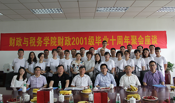 6月6日,财政与税务学院财政学2001级014班近30名毕业生重返母校,在仙林校区经济学科楼408会议室座谈。该班第一任辅导员、学院原团总支书记、校机关党委书记孙彬,学院原党总支书记、校后勤保障处书记龚建勤,学院名誉院长杨抚生教授及党政领导、辅导员老师参加了座谈会。座谈会由财税学院校友会办公室主任陆新葵主持。
