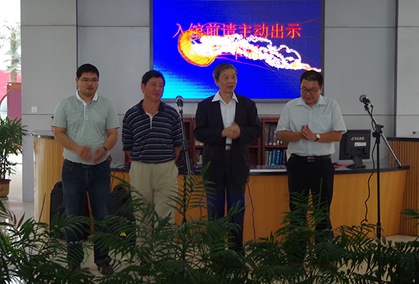 金陵书画社社长杨为发言。他回顾了金陵书画社十年的发展历程,并对给予本次书画展帮助与支持的各兄弟学校表示感谢。