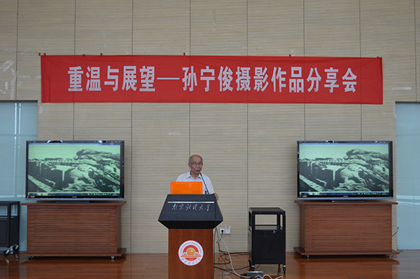 6月3日下午,原南京电视台副台长、南京对外文化交流中心理事孙宁俊应外国语学院、应用数学学院、图书馆邀请做客我校,在仙林校区图书馆“世界之窗”举办“重温与展望”摄影展暨作品分享会,以此纪念世界反法西斯胜利与中国人民抗日战争胜利七十周年。