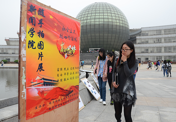 5月5日,由新闻学院主办的“随手拍”活动图片展在我校仙林校区图书馆广场举行。