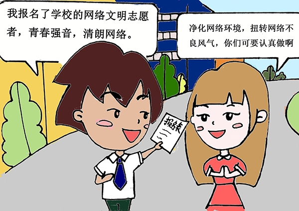漫画集内容幽默、生动形象的优点,更容易给人留下深刻印象,也更符合当代青年学生阅读兴趣。校团委意在通过漫画形式,号召网络文明志愿者用网上依法依度的文明举止,引领更多的全校青年形成共鸣,达成共同凝聚起清朗网络空间的共识。