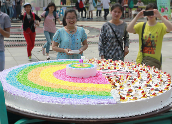 “巨无霸”型的彩虹蛋糕免费派送 后勤保障处供图