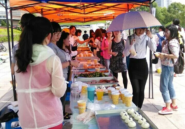 4月28日中午,由我校后勤保障处、后勤服务中心、校团委和校学生会主办的“食爱而食”第十二届校园美食节之“美食一条街”活动在我校仙林中心校区大学生活动中心前广场举行。副校长乔均出席本次活动,相关职能部门负责人和同学们一起参加了本次活动。活动现场热闹非凡,吸引了众多学生驻足,品尝美食。