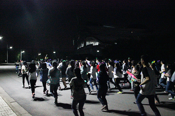 当晚19:00,参与师生在公益夜跑横幅上签名并穿戴上新潮炫酷的荧光设备。管工院党总支副书记袁怡琨致开场词并宣布活动开始。在领跑人员的带领下,数百名学生挥舞着荧光棒,把校园马路装点成青春昂扬的跑道。