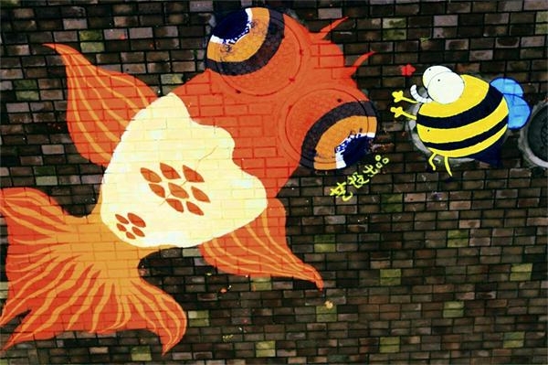 脑袋大大的多啦A梦,俏皮可爱的阿狸,轻盈翻滚的小海豚,还有栩栩如生的3D可乐罐和大金鱼……这一幅幅鲜活而又具有浮雕般立体感的画作,竟然是画在井盖上的。4月18日,艺术设计学院的学生对校园里的窨井盖动起了心思,开始了有趣的艺术创作。