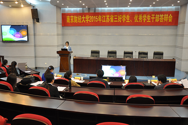 4月17日上午,我校2015年江苏省“三好学生”、“优秀学生干部”评选答辩会在仙林校区行政楼二楼会议室举行。党委宣传部、监察处、教务处、学生处、保卫处、校团委等相关职能部门负责人组成的校奖(助)学金管理委员会进行了现场评审。经个人申报、学院推荐、学校审核产生的35名优秀学子参加了本次公开答辩。