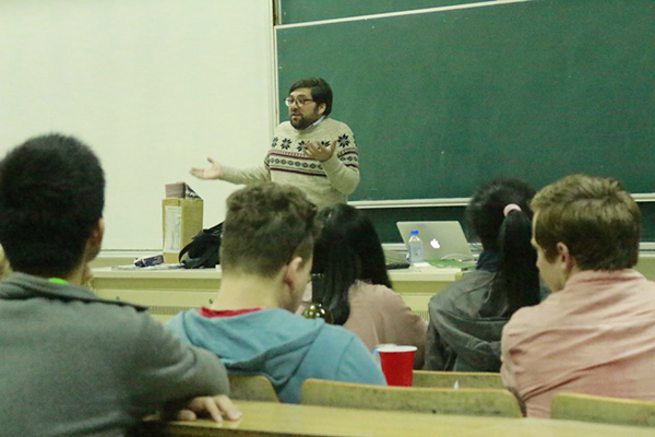 美籍教师Matthew Jacobs与台下的学生互动交流