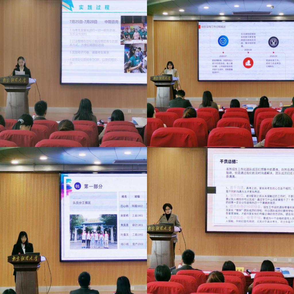 随后,10支队伍进行现场答辩。各答辩团队进行了精彩的现场分享,“吴‘埭’当风 有你‘财’行”小分队制作手绘南财通知书,赠与高考考生,新生报到后,与他们在图书馆前留下合影。“广西暑假招生宣传”小分队回到广西五所高中,采取线上预热、线下关注的方式与考生及家长进行互动,着力凸显南财特色。奔赴海门中学的“海中实验GOGOGO”小分队经过充分的前期准备与忙碌的中期实践后,后期还通过线上线下多种方式跟进宣传进度。