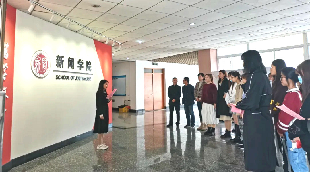 11月6日中午,新闻学院2020年记者节系列活动开幕式在仙林校区德正楼五楼举行。新闻学院党总支书记高晓东、党总支副书记李博伟和长江记者团、院学生会学生参加开幕式。