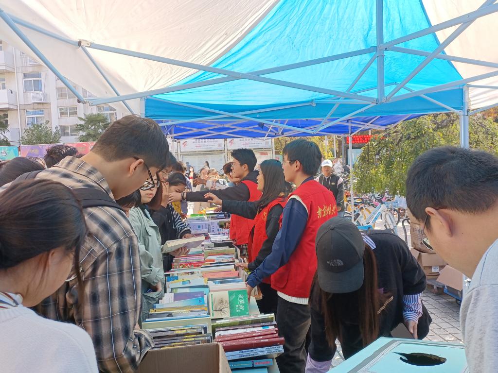 11月9日中午,由我校青年志愿者协会主办的爱心书库义卖活动在仙林校区北苑食堂前广场火热进行。现场人来人往、热闹非凡。同学们在购得书籍的同时,也献出了一份爱心。