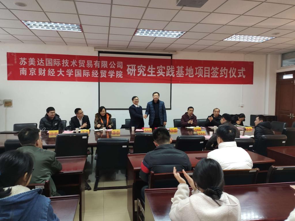12月17日下午,苏美达国际技术贸易有限公司与国际经贸学院在仙林校区德经楼308会议室举行了研究生实践基地项目签约仪式,苏美达国际技术贸易有限公司人力资源部总经理高志伟、主管徐华,国际经贸学院院长宣烨、党委副书记季霞、副院长杨继军、张文武等人参加了此次签约仪式。仪式由杨继军副院长主持。