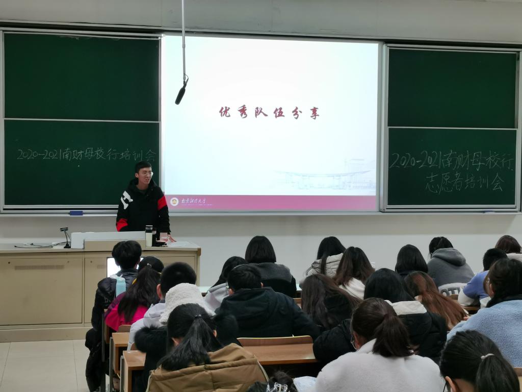 为帮助寒假“南财使者母校行”招生宣传专项社会实践团队深入了解南财校情校史及相关政策,更好地回访中学母校,宣讲南财,提升学校影响力和美誉度,12月26日晚,我校在仙林校区博观楼201、202、301举办了寒假“南财使者母校行”招生宣传专项社会实践培训会。近千名学生参加现场咨询会,未到场学生通过观看录播完成此次培训。