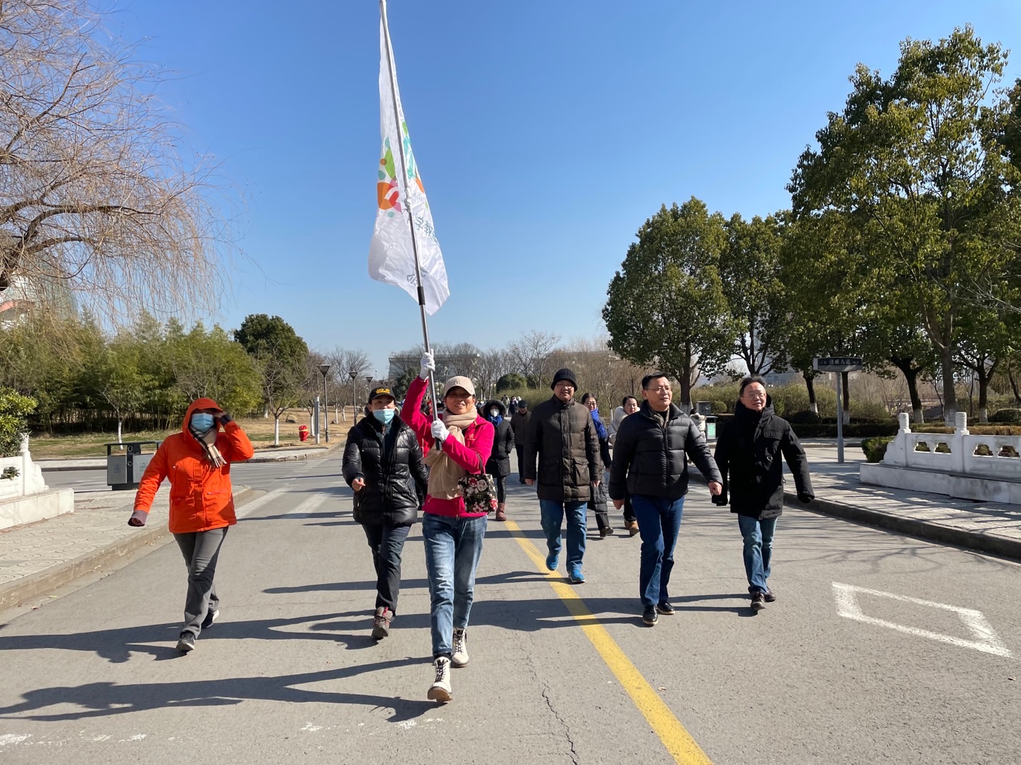 本次活动从图书馆广场出发,途径中苑学生宿舍、校医院、西苑学生宿舍、体育馆、西苑操场、博文楼、行政楼,全程3公里。尽管寒风瑟瑟,但是参加活动的老师们,个个精神饱满,身姿矫健,健步如飞,大家一边观赏校园冬景,一边享受健走带来的激情活力,一路欢歌笑语。