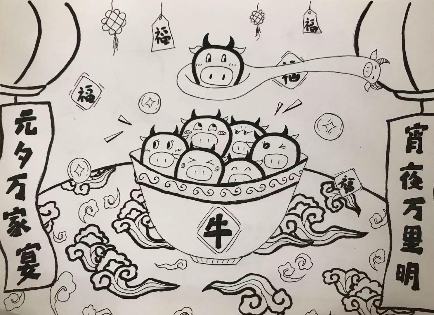 学生绘制的“小牛”汤圆