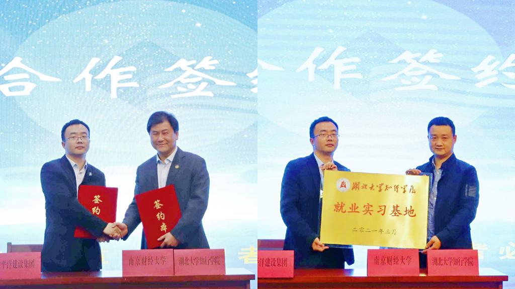 3月25日下午,我校与湖北大学知行学院、太平洋建设集团校企合作签约仪式暨南财就业讲堂活动在仙林校区图书馆一楼报告厅举办。我校学生处处长孙丹兵,湖北大学知行学院招生就业处副处长胡显曙一行,太平洋建设集团董事局副主席、CEO刘安琦一行,我校相关学院党委副书记及学生代表参加活动。活动由学生处副处长李娜主持。