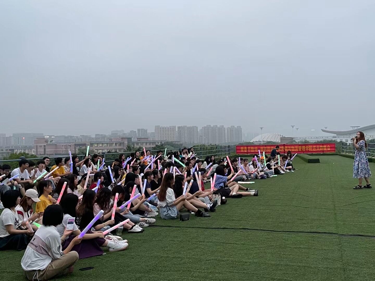 6月17日晚,营销与物流管理学院在仙林校区德业楼三楼草坪上举办了“青春不毕业”送大四晚会。营销与物流管理学院领导老师、2021届毕业生们和部分其他年级学生参与活动。同学们在舞蹈《next level》、歌曲《飞云之下》《我们》中讲述着青春、梦想和未来的故事。互动活动击鼓传花游戏和猜歌迷游戏,为晚会增添了更多趣味。舞蹈串烧《飞奔向你》《十万毫升的泪水》以及诗朗诵等节目,赢得了现场阵阵掌声。大合唱《那些花儿》让现场观众们沉浸在清新旋律与温柔氛围之中,不少同学红了眼眶,伴随着歌声,主持人缓缓推出为毕业生们准备的插有每个人铭牌的蛋糕,昏暗的草坪上,蛋糕上的蜡烛发出熠熠的光,照亮大家的脸庞,晚会在大家的欢呼声中圆满落幕。