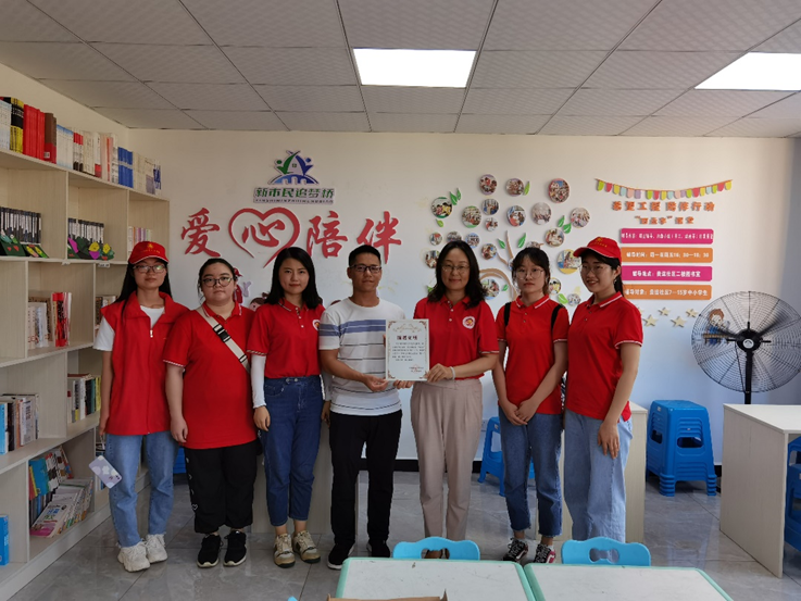 近日,外国语学院和马克思主义学院的师生志愿者们前往贵州省从江县,与从江团县委开展合作共建活动,并在从江县易地扶贫搬迁贵运社区安置点“陪伴小课堂”举行“同心·红石榴家园从江基地”揭牌仪式。外国语学院党委书记李骏、分团委书记李超雅、从江团县委陈灵以及学生志愿者们参加活动。