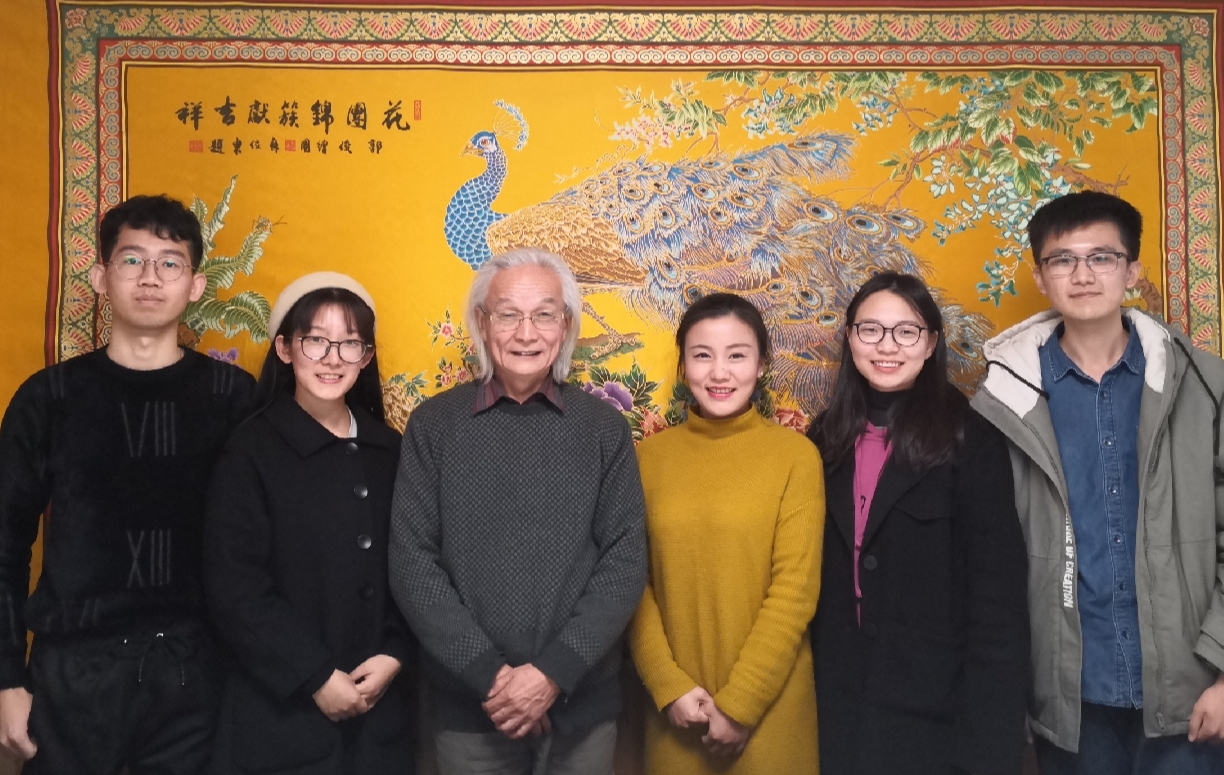 四位研究生采访郭俊大师并合影(自左到右:岳伟琪 沈慧 郭俊 肖妍娜 张奕 朱光耀)