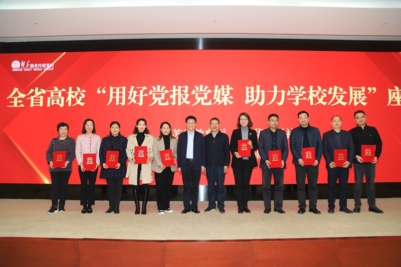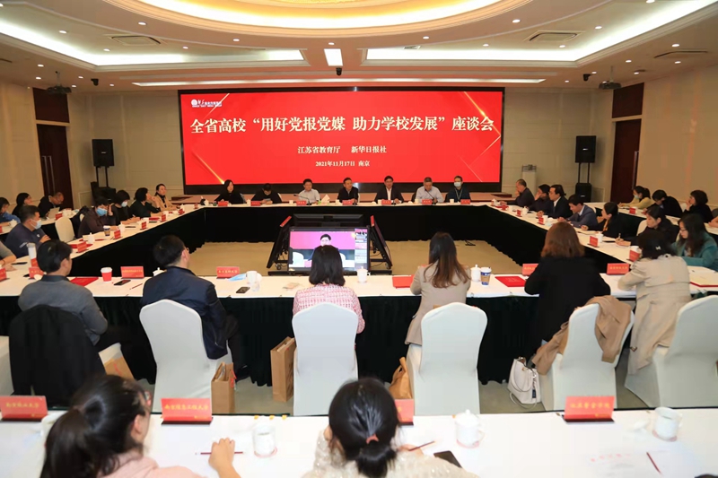 11月17日下午,由省教育厅和新华日报社共同举办的全省高校“用好党报党媒 助力学校发展”座谈会举行,省委教育工委副书记徐子敏,新华日报社党委书记、社长、新华报业传媒集团董事长双传学,新华日报社党委副书记、总编辑顾雷鸣出席会议并讲话,会议由新华日报社副总编辑黄建伟主持。在宁高校40位宣传部门负责同志和省教育厅社政处有关同志参加会议,50多所宁外高校通过视频连线收看会议。会议现场举行了2021年度全省高校宣传工作优秀单位颁奖仪式,我校获评“2021年度全省高校宣传工作优秀单位”称号,我校党委宣传部副部长陈丹在会上作交流发言。