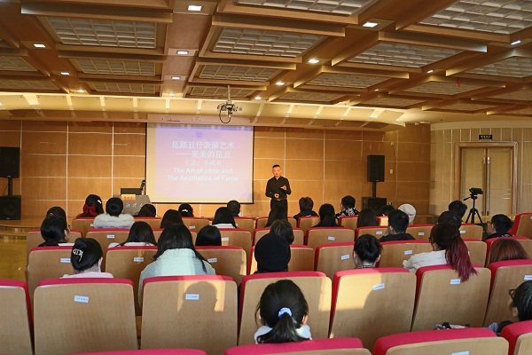 最后,李鸿良先生带领在场师生共同鉴赏了昆曲《牡丹亭·惊梦》片段,现场表演了《鲛绡记·写状》及《孽海记·双下山》等经典戏曲桥段。精彩的讲解与表演赢得师生的热烈掌声,不少同学表示第一次近距离接触昆曲,感受到了昆曲的强大魅力,也为之骄傲自豪。