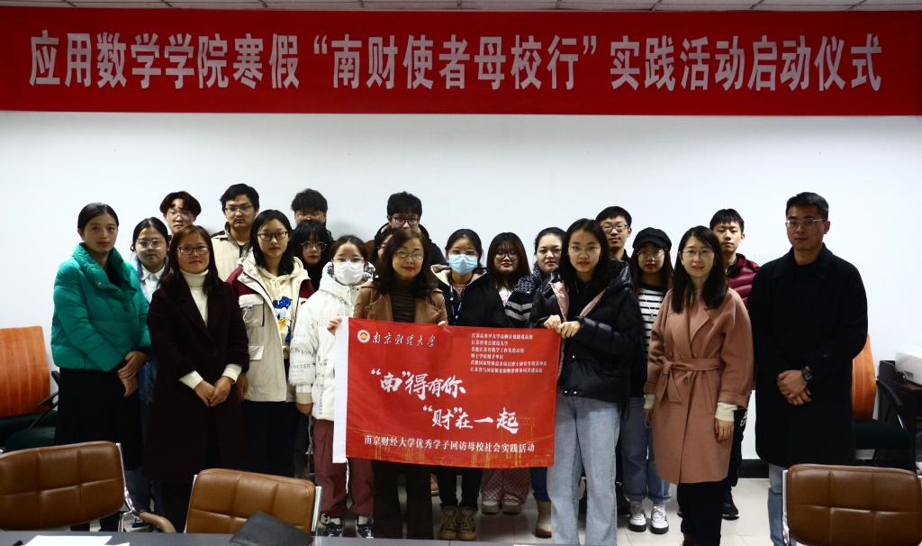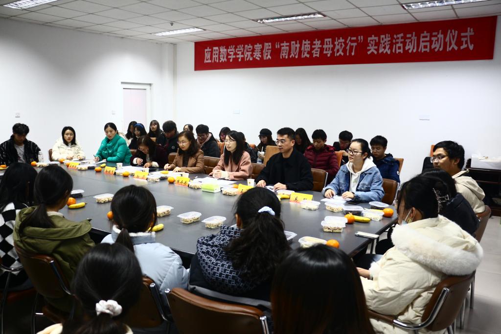 12月3日晚,应用数学学院在仙林校区中苑10号宿管站活动室举行寒假“南财使者母校行”招生宣传专项社会实践活动启动仪式。学生处、应用数学学院招生工作相关人员以及南通和河北片区“南财使者母校行”的学生团队成员代表参加启动仪式。启动仪式由应用数学学院党总支副书记布丹丹主持。