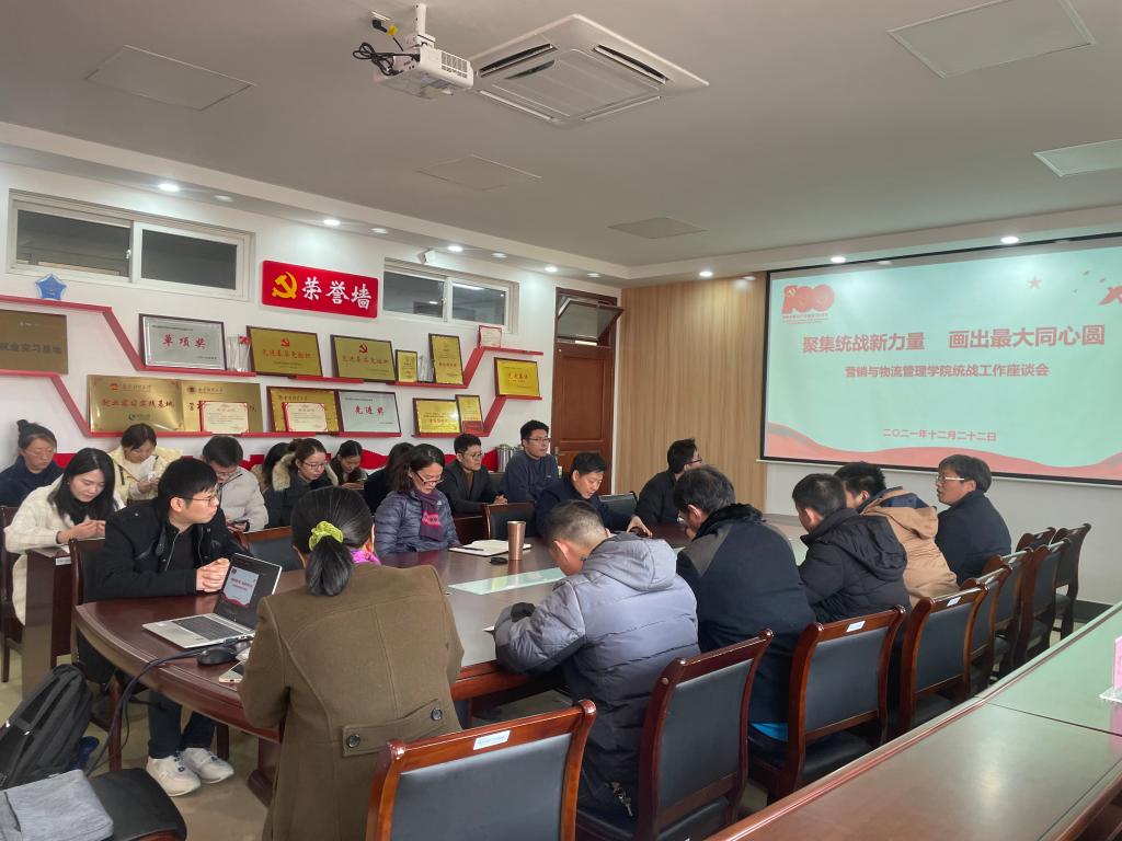 为适应新形势、新任务、新阶段统一战线的新发展、新变化的要求,凝聚学院高质量发展强大合力,12月22日,营销与物流管理学院在仙林校区德业楼535会议室召开青年教师统战工作座谈会,学院全体领导、教工党支部书记和部分党外青年教师代表参加座谈会。座谈会由营销与物流管理学院党委书记黄建国主持。