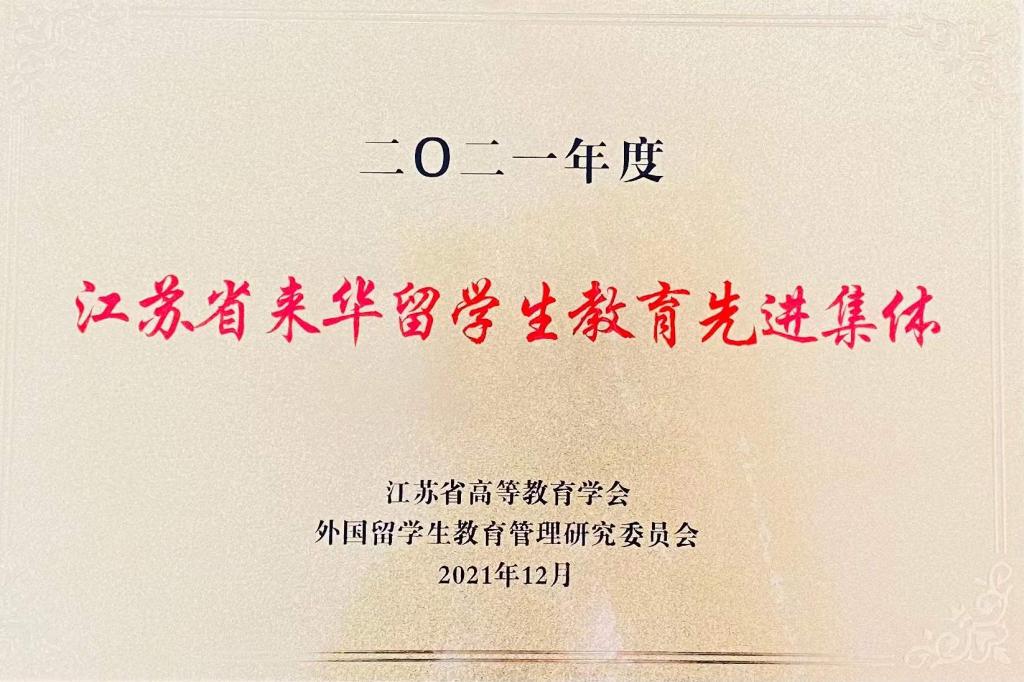 近日,江苏省高等教育学会外国留学生教育管理研究委员会公布了2021年度“江苏省来华留学生教育先进集体”评选结果,我校继2020年后,再次获评“江苏省来华留学生教育先进集体”。