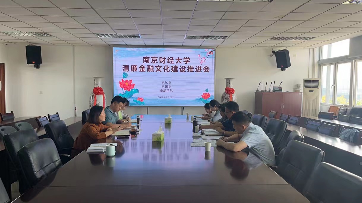 9月22日上午,金融学院在仙林校区德经楼508会议室举办清廉金融文化建设推进会,校团委书记徐刚、纪委监督检查处处长茅炜、金融学院党委副书记张士青及相关工作人员参加推进会。会议由金融学院党委书记李玉琴主持。