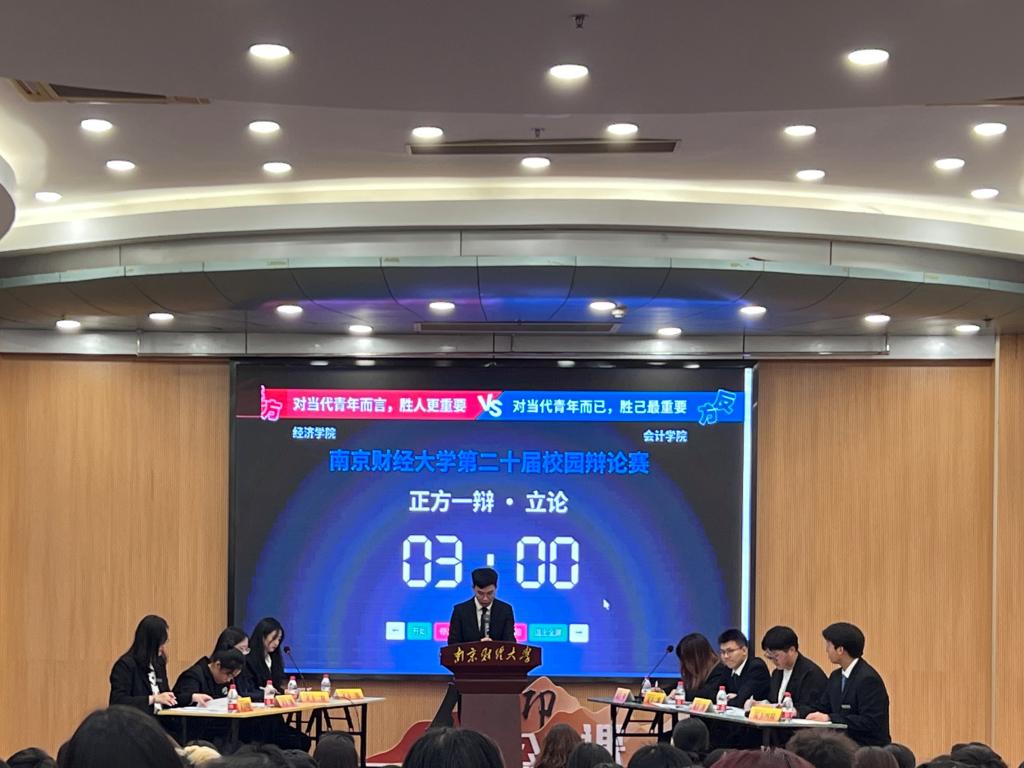 11月23日晚,由校团委、财政与税务学院主办,大学生辩论与演讲协会承办的“青春献礼二十大,强国有我新征程”第二十届校园辩论赛决赛在仙林校区大学生活动中心团委报告厅精彩上演。学生处副处长、学生就业与创业指导中心主任李慕原,财政与税务学院党委副书记王翔,校团委组织与社团管理科徐曼担任评委。