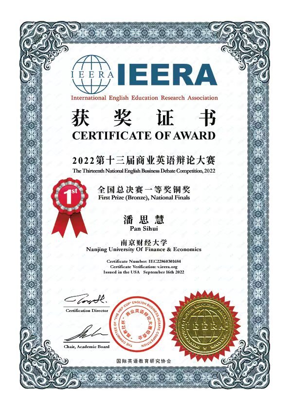 近日,第十三届“高教社杯”商业英语辩论大赛暨全国高校创新创业系列赛圆满落幕。经过激烈比拼,外国语学院“White Queen”辩论队获一等奖铜奖,“Die for Sound”辩论队获三等奖,外国语学院教授肖辉获评“最佳指导教师”。