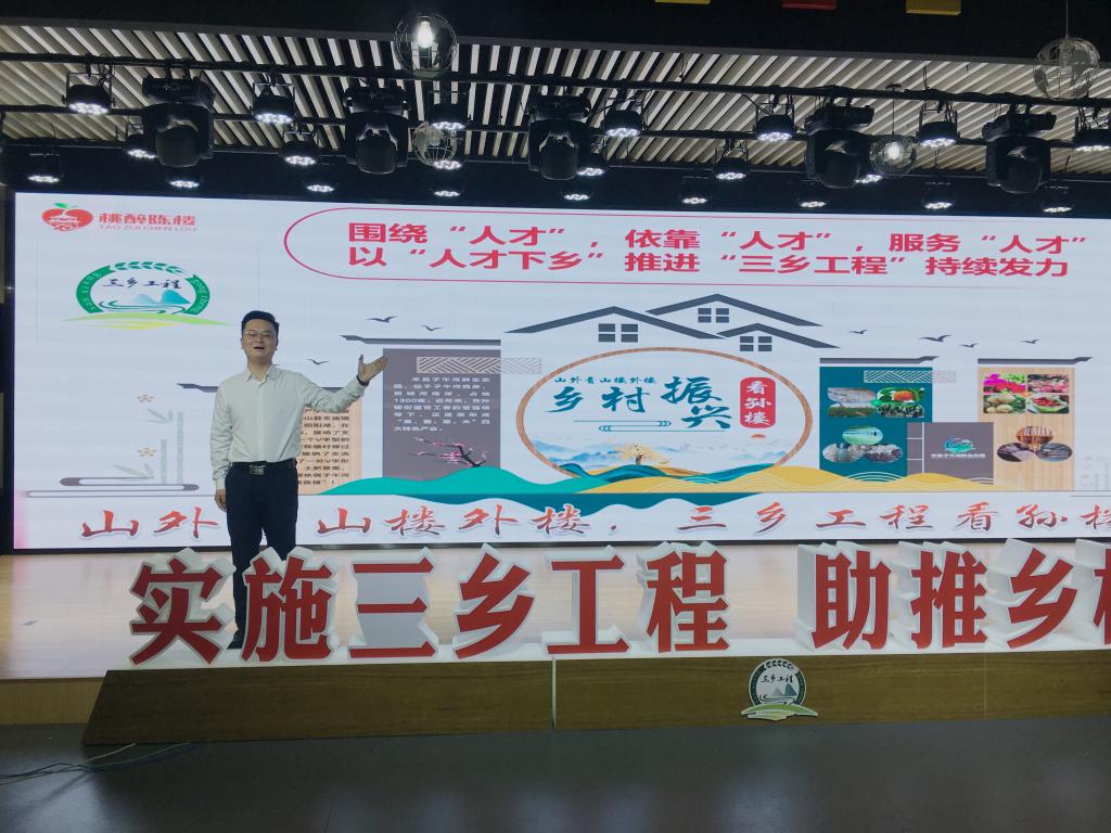近日,徐州市第三届“逐梦乡村·创享彭城”大赛决赛圆满落幕。我校选派徐州市丰县孙楼街道陈楼村驻村第一书记、校团委宣传与科创实践科科长胡新蕲代表丰县获人才下乡组一等奖。本次大赛由中共徐州市委组织部、徐州市委农办、徐州市农业农村局、共青团徐州市委员会主办,徐州市“三乡工程”工作领导小组办公室承办。省农业农村厅、江苏师范大学、市委办、市政府办、市人社局、江苏农担徐州分公司等相关领导及评审专家出席活动。