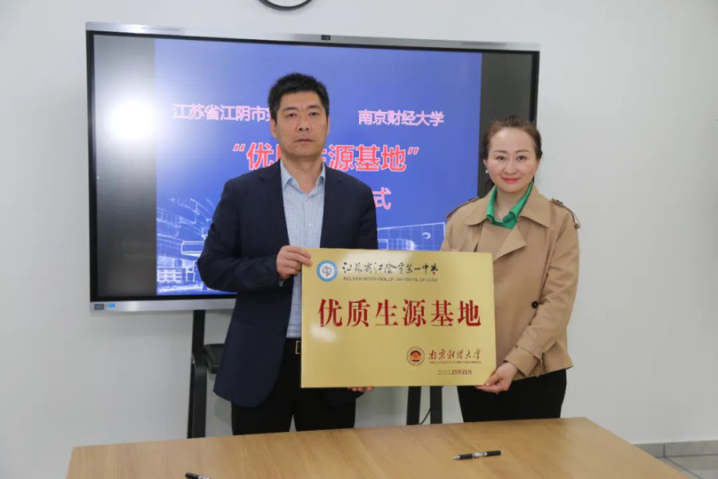 授予江阴市第一中学“南京财经大学优质生源基地”铜牌
