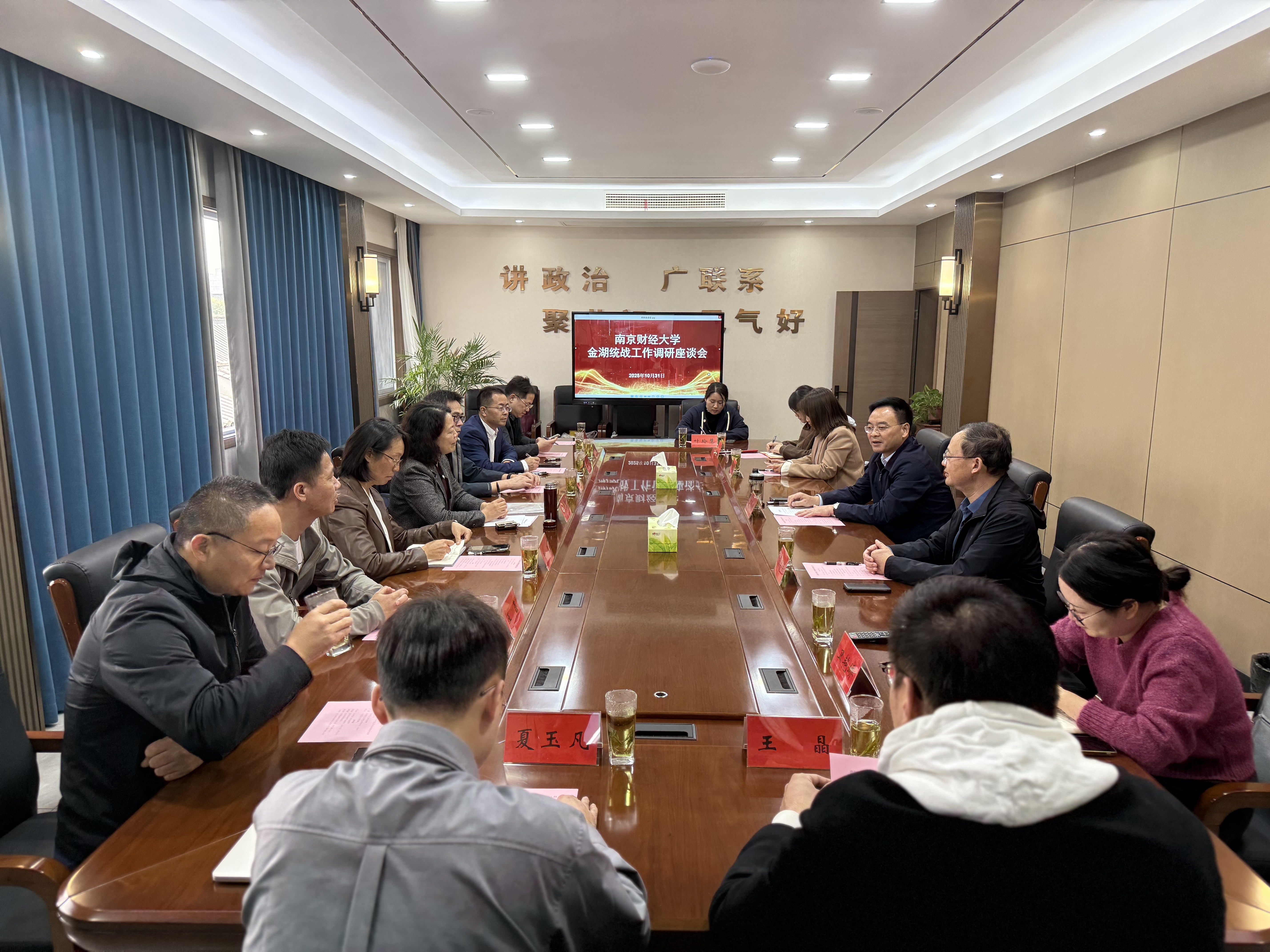 调研走访结束后,双方召开基层统战工作交流座谈会。梁喜洲部长介绍了金湖县统一战线近年来在围绕中心、服务大局方面取得的成效。他表示,近年来金湖县委通过构建“大统战”工作格局,有效凝聚各方力量,特别是在助力民营经济高质量发展、深化“荷你同心”等实践创新品牌建设方面进行了积极探索。希望双方在统一战线理论研究与实践创新、党外干部及高层次人才培养、统战工作品牌共建等方面加强协作。