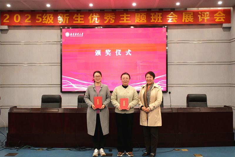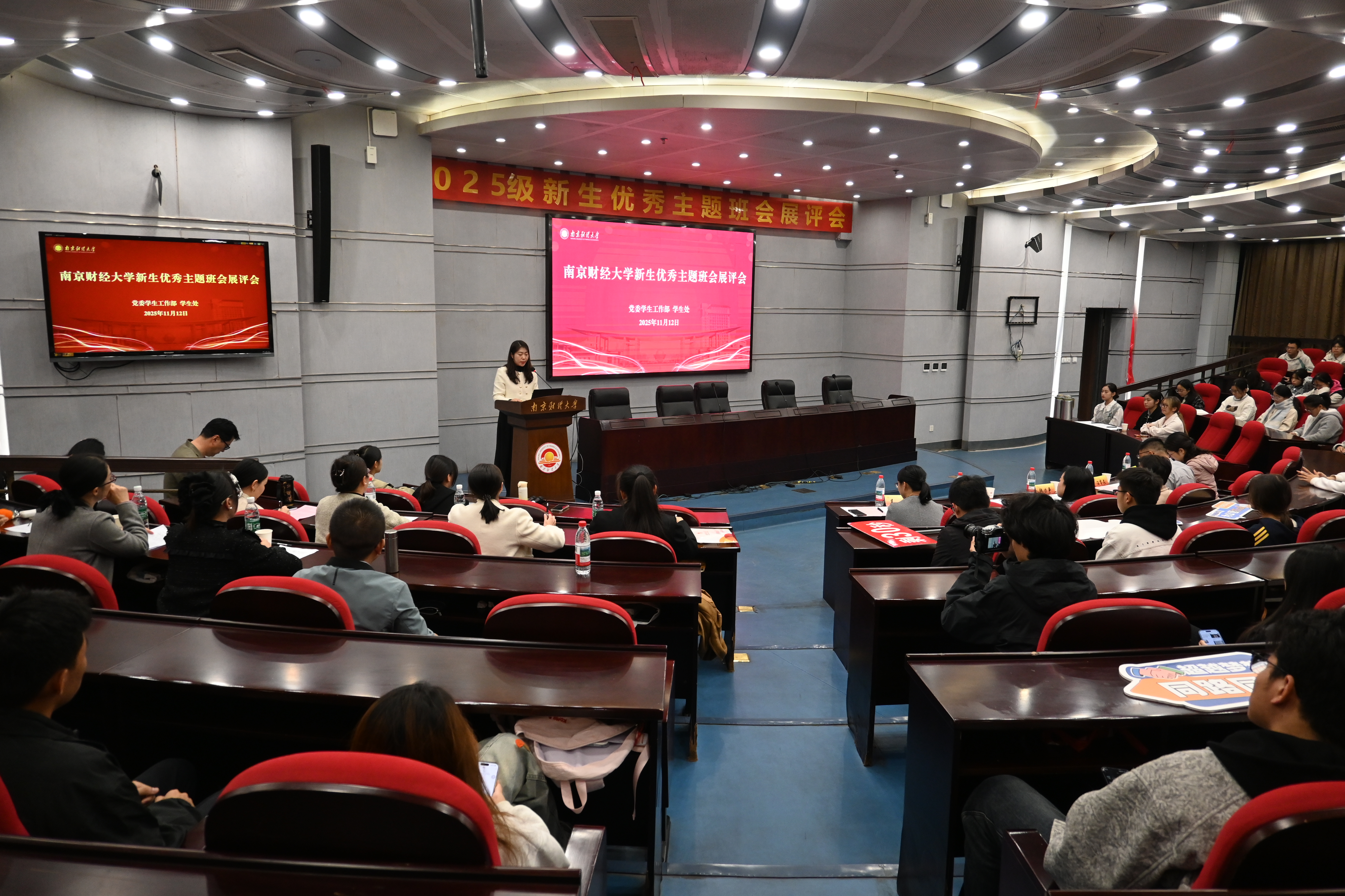 11月12日晚,我校在仙林校区行政楼二楼报告厅举办2025级新生优秀主题班会展评会。南京师范大学学工部副部长、学生处副处长汪育文,我校党委学生工作部部长、学生处处长韩力争,校团委书记张蔚伟,心理健康教育中心副主任吴垠,党委学生工作部副部长、学生处副处长袁怡琨等担任评委。全体本科生新生辅导员和本科生新生班级学生干部代表到场观摩学习。展评会由工商管理学院新生辅导员赵雪主持。