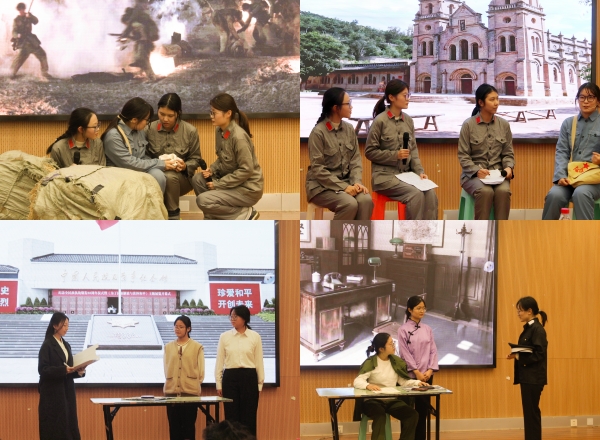 本次演出以“80件抗战文物,80载民族记忆”为主题,同学们从十件珍贵抗战文物及其背后的英雄事迹中汲取创作灵感。聚焦“杨靖宇·做地下工作时穿的大衫”“吉鸿昌·致妻子胡红霞的遗书”“彭雄·公文包”“赵一曼·靰鞡鞋”“戴安澜·‘铁汉’印章”“左权·望远镜”“王海纹·参军前穿的旗袍”“佟麟阁·墨盒”等代表人物及革命物件,通过情景剧形式,生动再现了文物背后的英雄故事与革命精神,使红色信仰在舞台上得到具象化呈现。