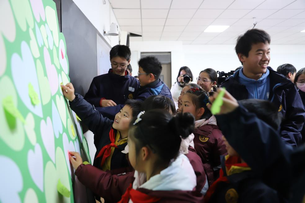 活动还设置了集体创作环节。大中小学生在便笺上写下自己的人生理想并粘贴在展板上。一张张卡片生动诠释了思政教育内化于心、外化于行的育人成效。
