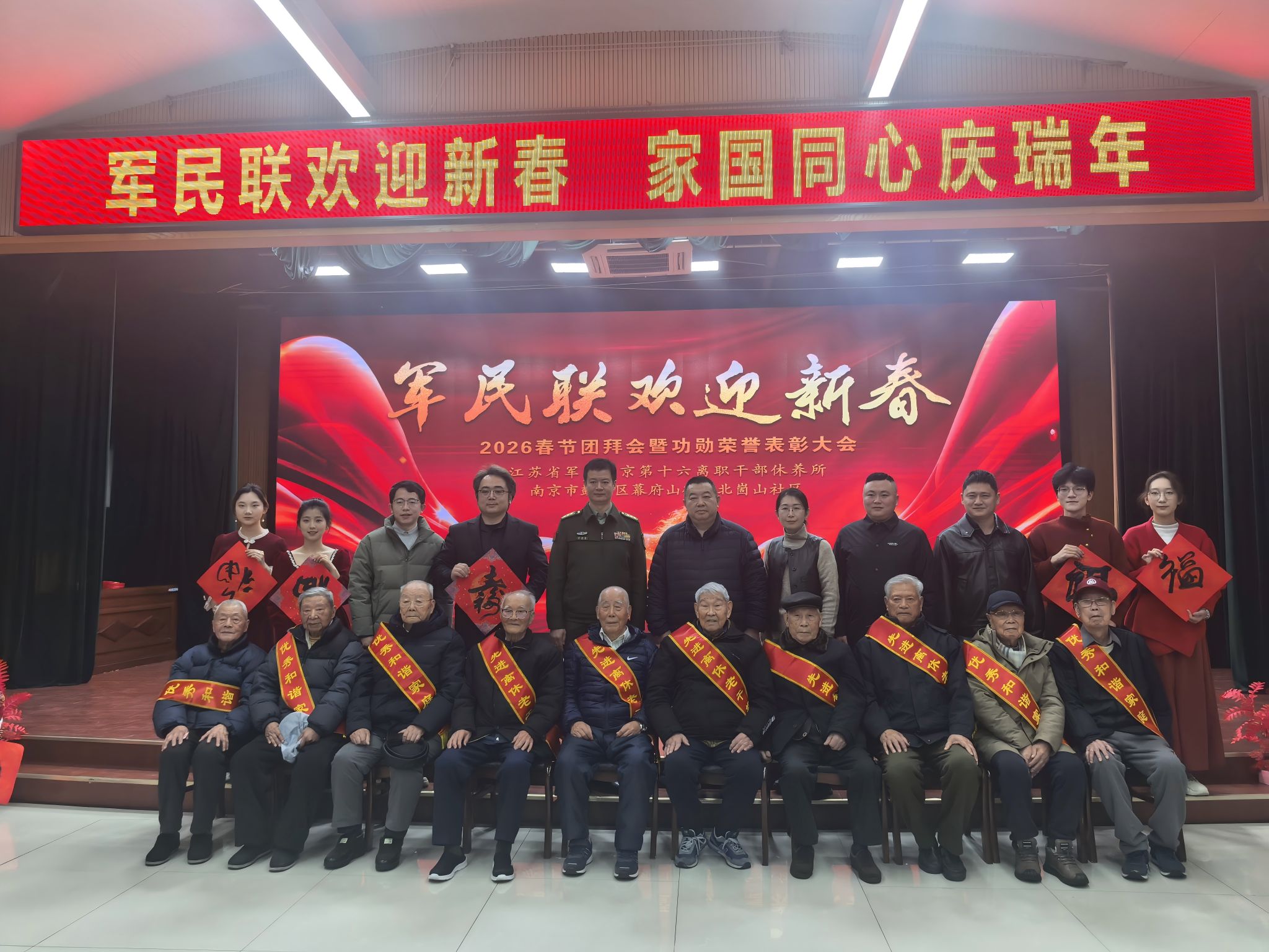 会计学院党委书记卜金涛、党委副书记布丹丹、辅导员及“丹心百炼”合唱团学生志愿者代表一行,前往江苏省军区南京第十六离职干部休养所,参加军民联欢迎新春——2026年春节团拜会。学院“丹心百炼”合唱团深情献唱了《夜空中最亮的星》《祖国,慈祥的母亲》《一杯美酒》,用歌声表达了对崇高理想的追寻、对祖国的挚爱以及对美好生活的礼赞。各共建单位也带来了舞蹈、戏曲、器乐等丰富多彩的节目,共同营造出欢乐祥和的节日氛围。