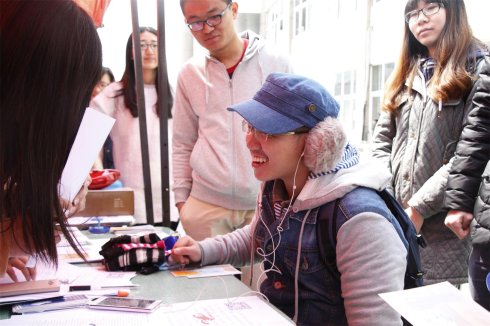 “我们有一系列的道具来帮助同学们完成体验活动。”Sunny爱心协会的会长俞越告诉记者,体验活动一共分为视力、听力、关节、负重四个区域。
