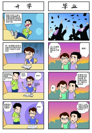 ; ; 上周,南财第7宿管站的邓元坤、孙勇两位同学联手创作了一幅漫画。他们希望通过在《双城记》上刊登这样的漫画,给更多的同学传递“舍友关系”的正能量。“在宿舍里发生了什么事大家说出来才好解决,不应该憋在肚子里。每天住在一块儿,相互理解一定不能少。”