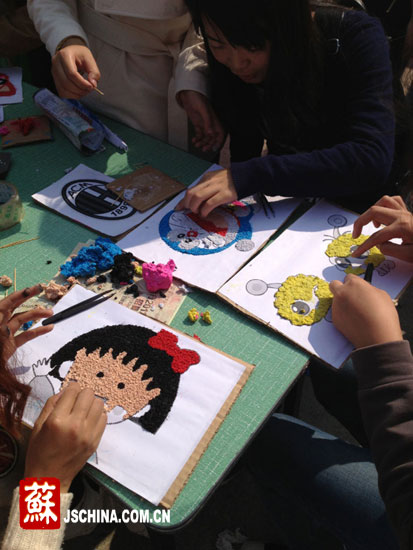 〖中国江苏网〗把废纸变成神奇的艺术品 南财学子制作纸浆画宣传环保