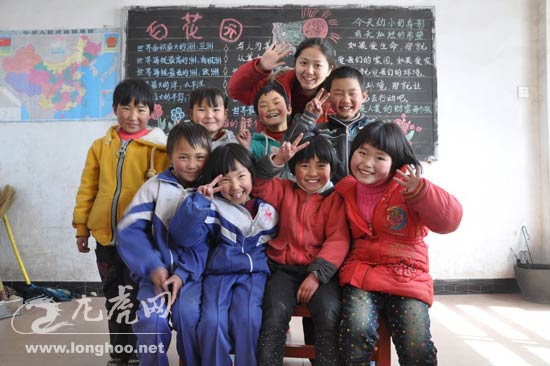 上胡丹小学的孩子们特别喜欢她,带她去家里玩,爱把自己喜欢吃的东西带给她。除了上课,她还跟孩子们一起做游戏,有时甚至就坐在地上一块儿疯玩。以前“很爱臭美”的郝安琪竟然一个月没有洗外衣,“涂脂抹粉”也都省了,“白富美”整个变成了“灰姑娘”。郝安琪说,她不洗衣服有两个原因,一是因为西部风沙大,到处都是灰,在黑板上或课桌上写字,很容易就沾到灰,就干脆不洗了。更主要的是,西部缺水,孩子们也很少洗澡、洗手。“我现在能和孩子们一起坐在地上玩,孩子用脏乎乎的小手递过来的小饼我照样能一口吞。”说到这里,郝安琪显得挺自豪。