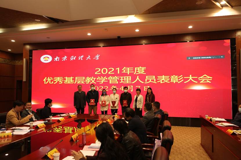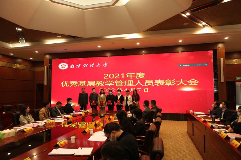 会议对2021年度优秀基层教学管理人员进行表彰,时现副校长为获奖人员颁发荣誉证书。获奖代表、公共管理学院教学秘书张婷婷和食品科学与工程学院实验员仝瑶分别发言,交流工作心得和感悟。