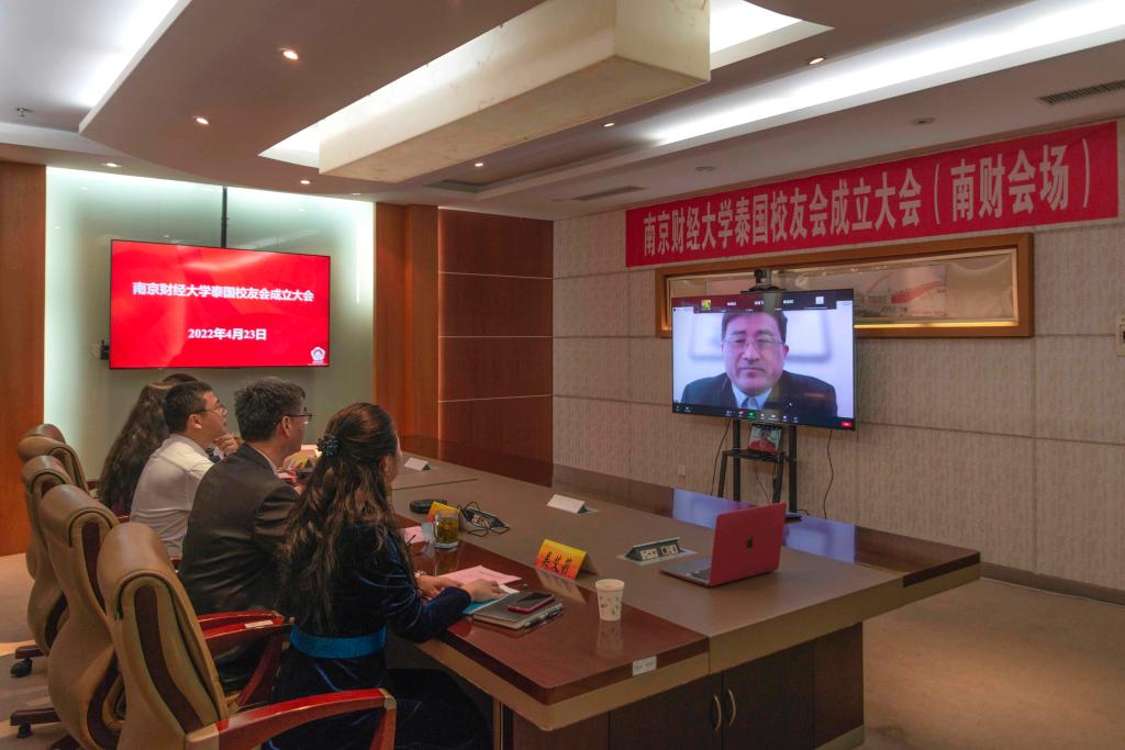 4月23日上午,我校泰国校友会成立大会在泰国曼谷举行,仙林校区行政楼1409会议室设立分会场。党委常委、副校长、校友总会常务副会长乔均出席大会,对外联络处、国际教育学院负责人以及泰国校友云端欢聚一堂,共同庆祝泰国校友会的成立。大会由对外联络处副处长王冲主持。