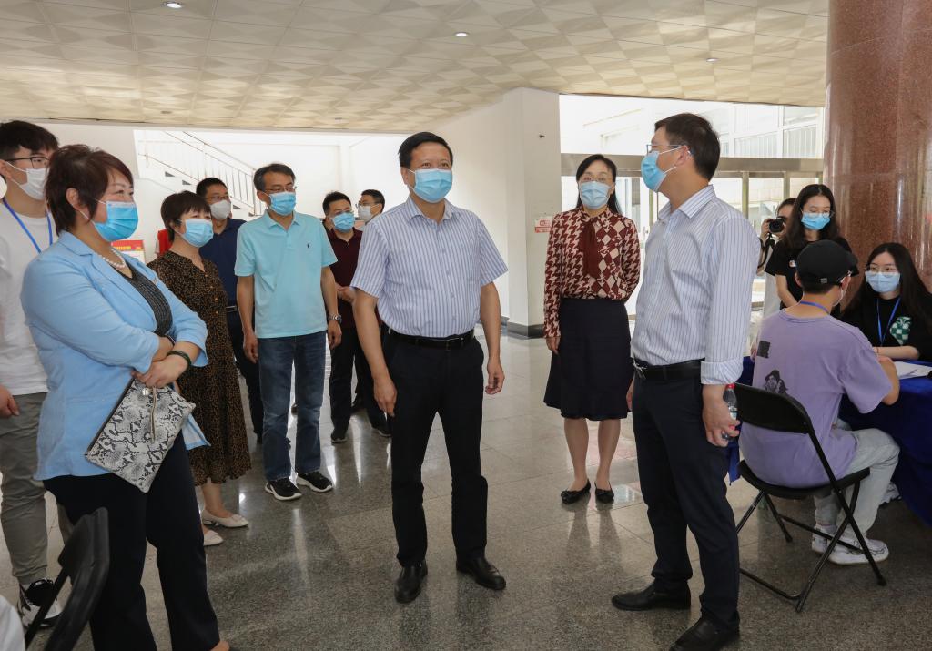 校党委书记张利民,党委常委、副校长时现、李群深入招聘会现场